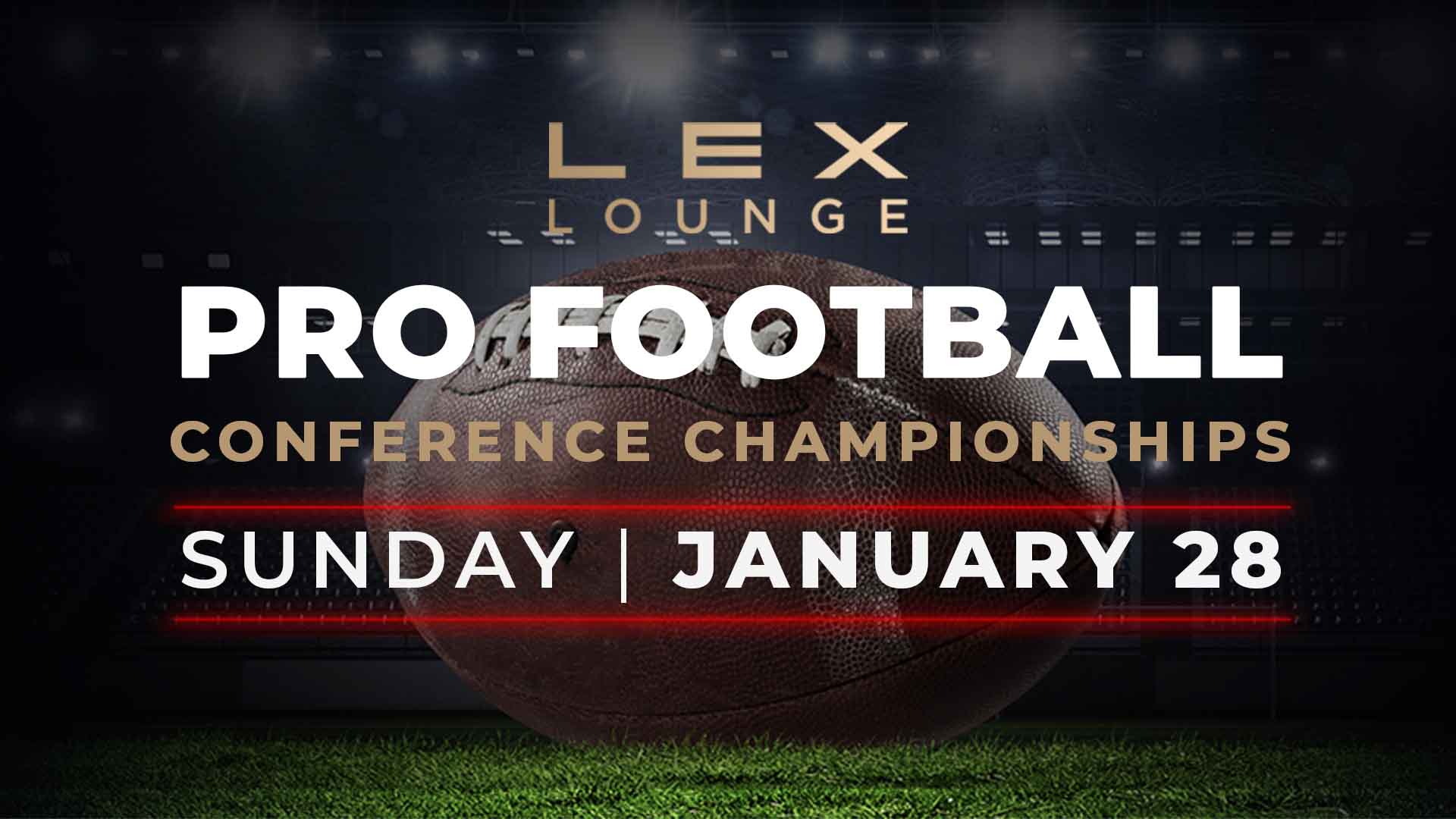 Join us in LEX Ultra Lounge to watch Kansas City duke it out with Baltimore. Stick around to watch San Francisco and Detroit take each other on in the conference championships. Watch the game in style with prize giveaways, drink specials, and food for order/delivery.